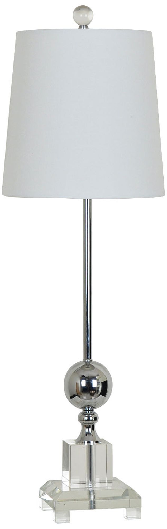 Two round clear crystal balls decorate the polished chrome base.
